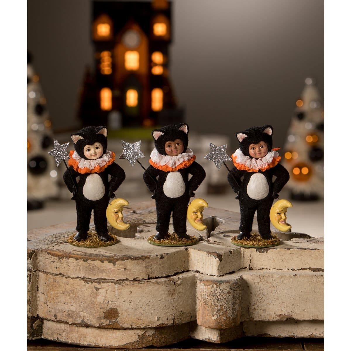 Combine the Dressed Up Cali Cat with other Halloween Trick or Treat Children from Bethany Lowe, to create a unique and festive ambiance. Mix and match with pumpkins, spiderwebs, and other spooky elements to enhance the Halloween spirit in your home. With its versatile design, this delightful cat figurine fits seamlessly into any Halloween scene.