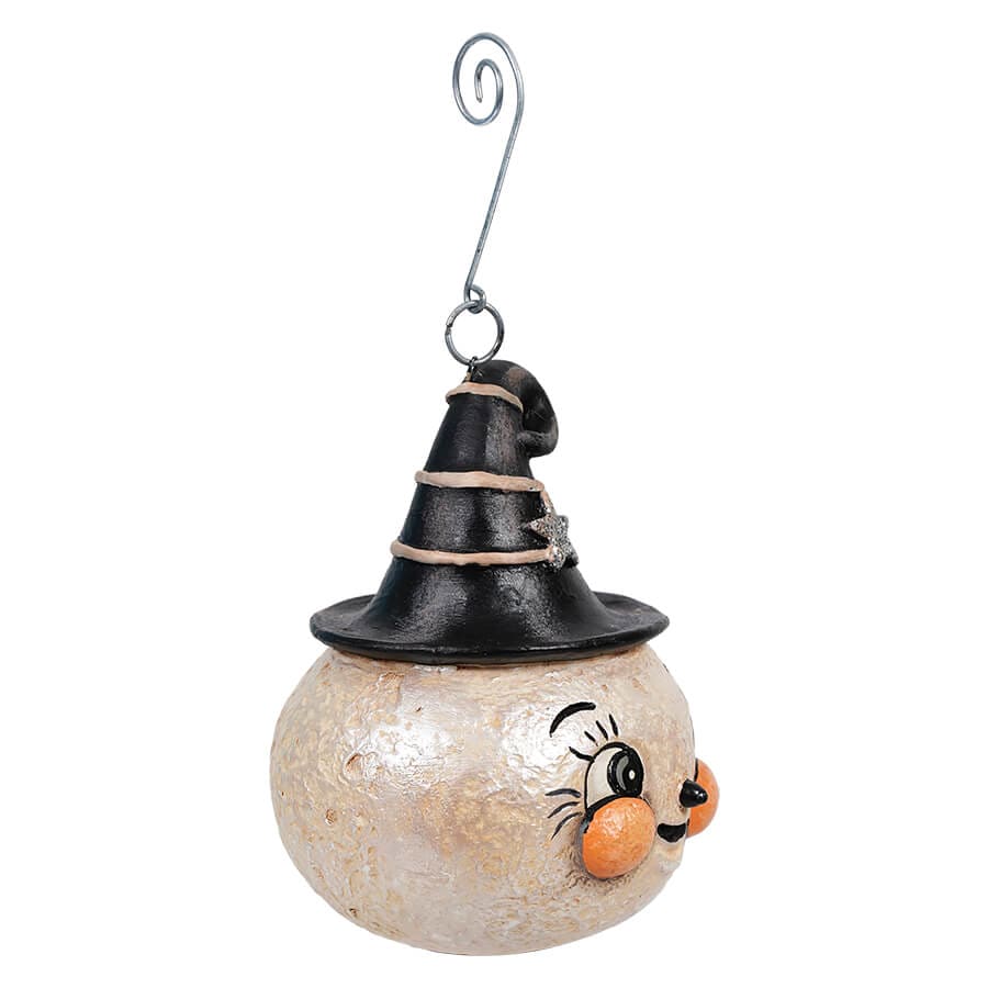 The Full Wanda Luna Ornament is so dang cute! Look at those features, the round, full moon is wearing a quintessential Johanna Parker smiling face, has expressive eyes and rosy cheeks. This sweet little ornament will be the perfect addition to your Halloween ornament collection. It comes with its own curly silver ornament hanger.