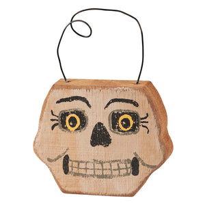 - Our Skeleton Face Chunky Sitter is easy to hang for display via the attached wire hanger or can free stand on a flat surface